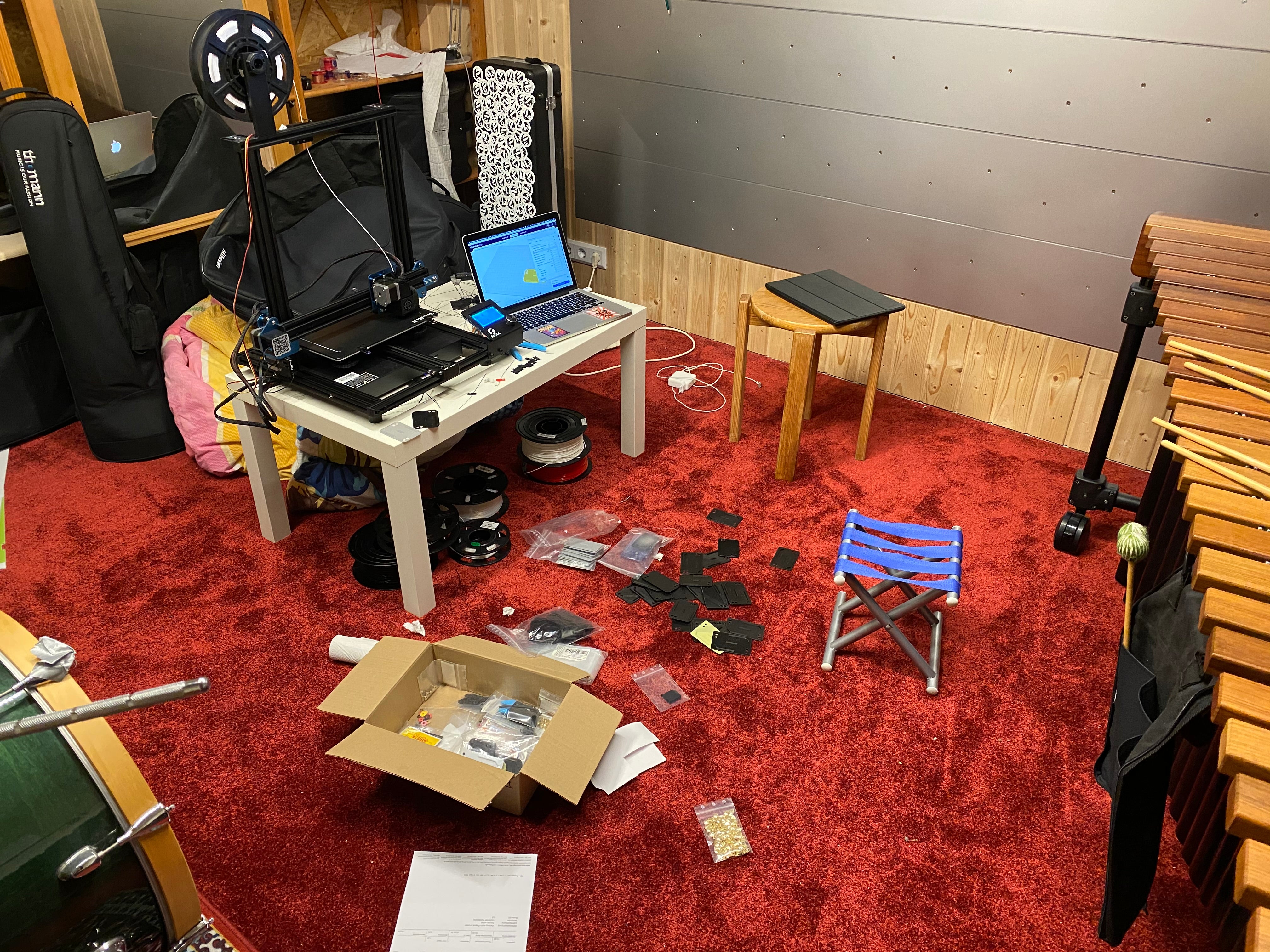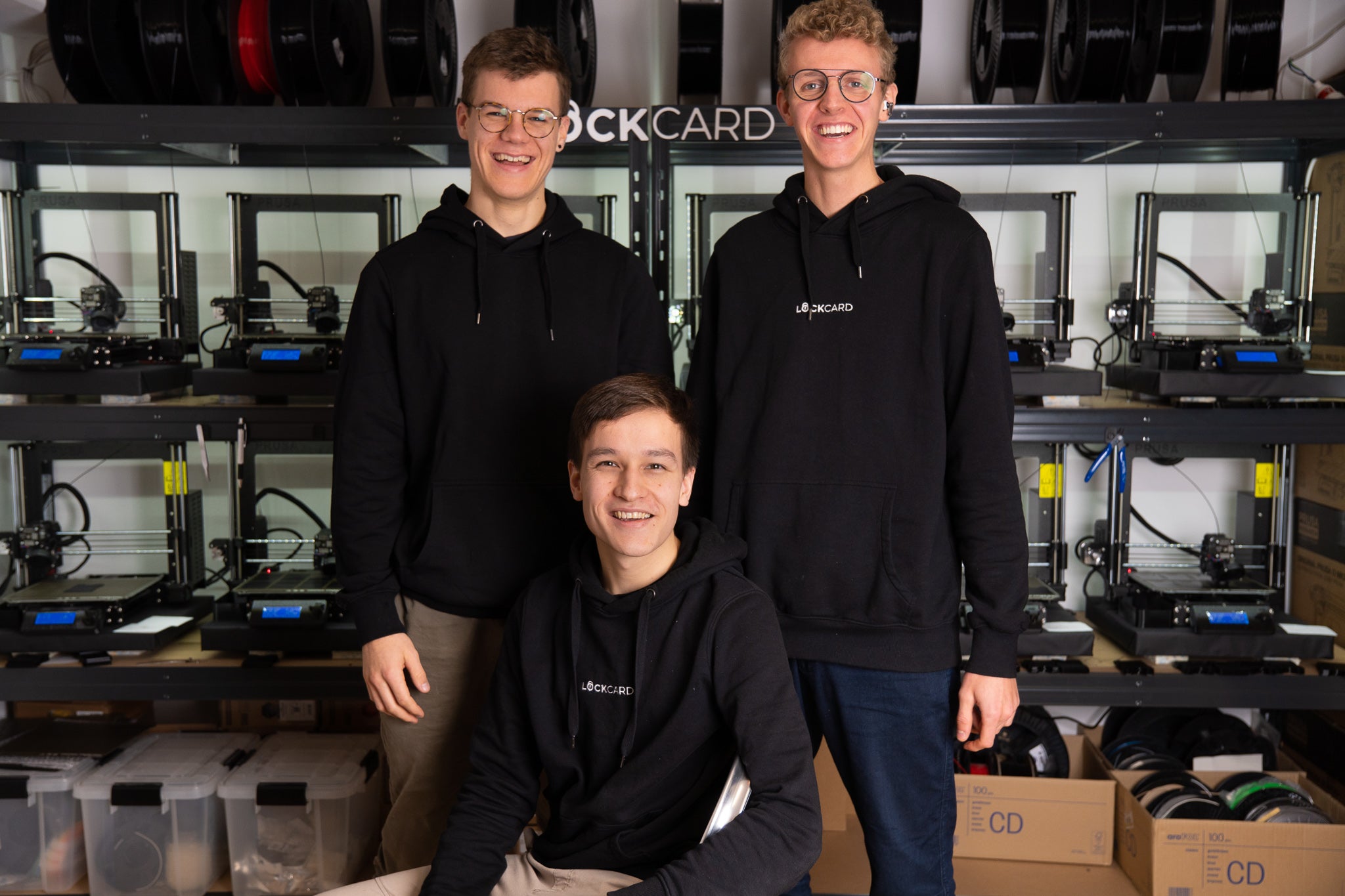2021 - November: Mit einem Drucker hat es angefangen, der hat dann aber schnell nicht mehr ausgereicht. Also haben wir Drucker um Drucker unsere Produktionskapazität erweitert.